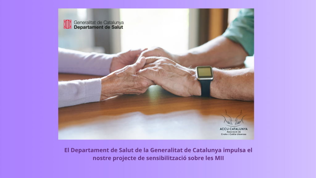 El Departament de Salut de la Generalitat de Catalunya ha aprovat una subvenció per ajudar-nos a desenvolupar el nostre projecte de sensibilització i acompanyament a persones amb Malalties Inflamatòries Intestinals (MII), dins la convocatòria d’ajuts per al foment de la