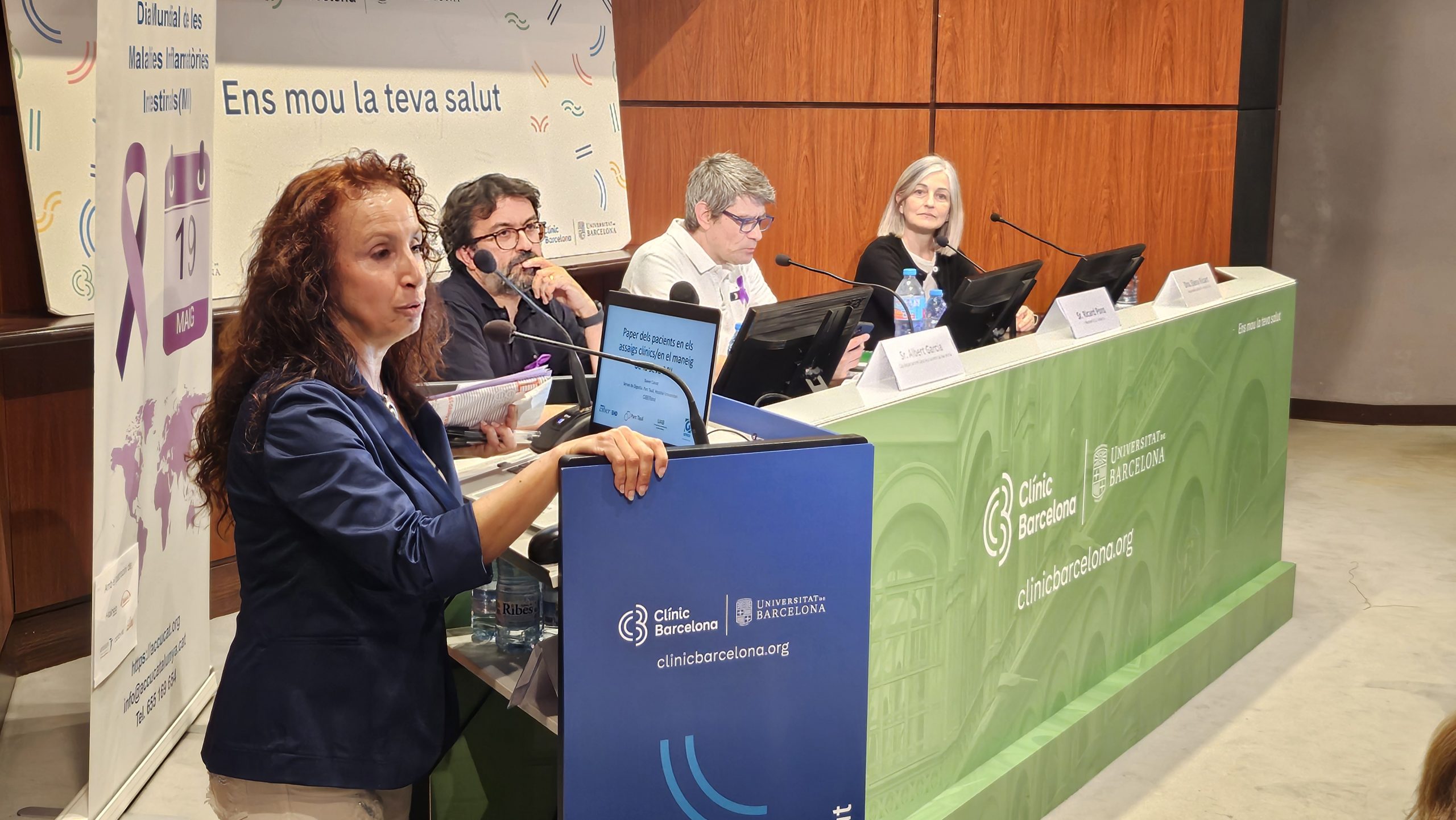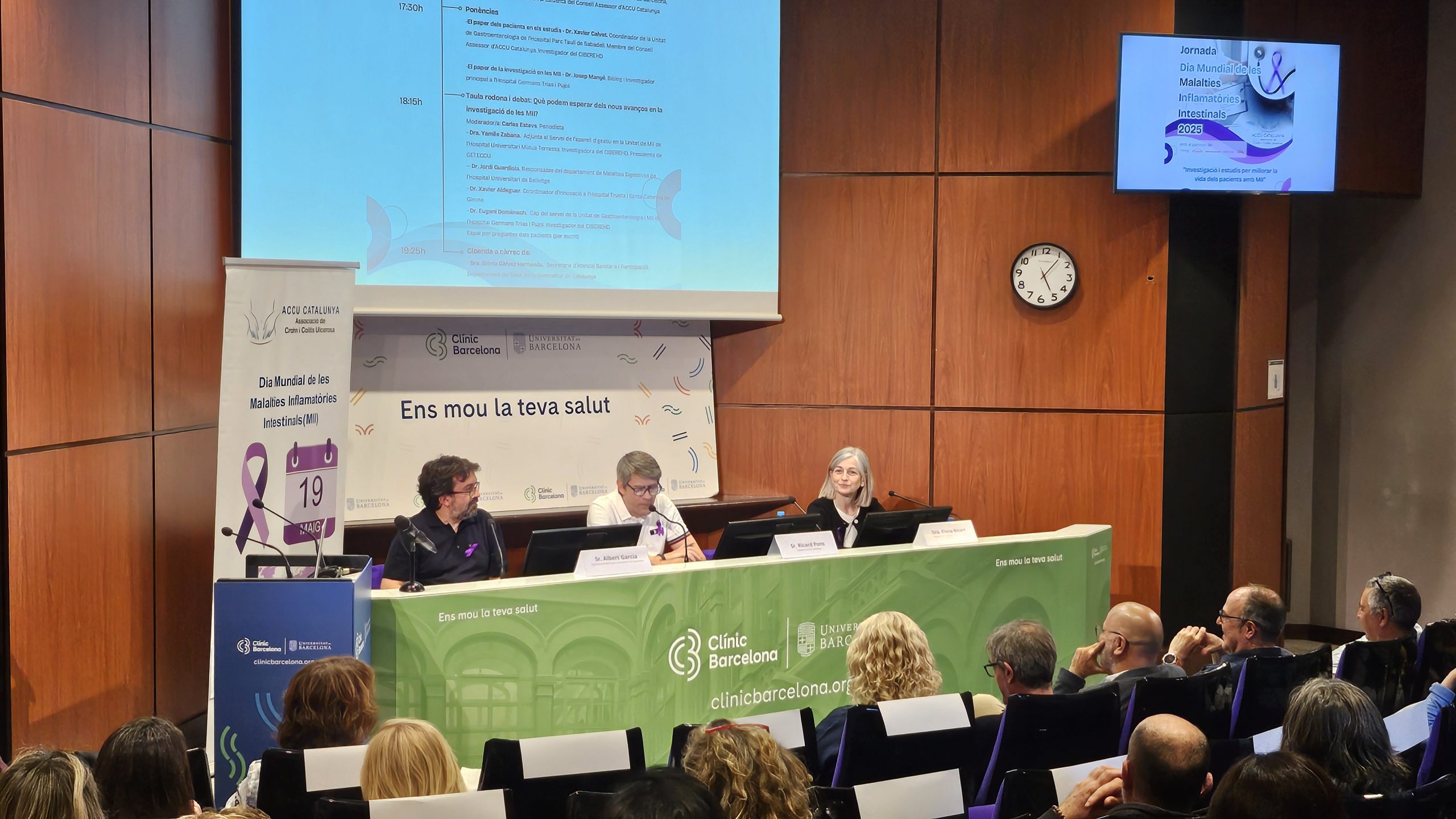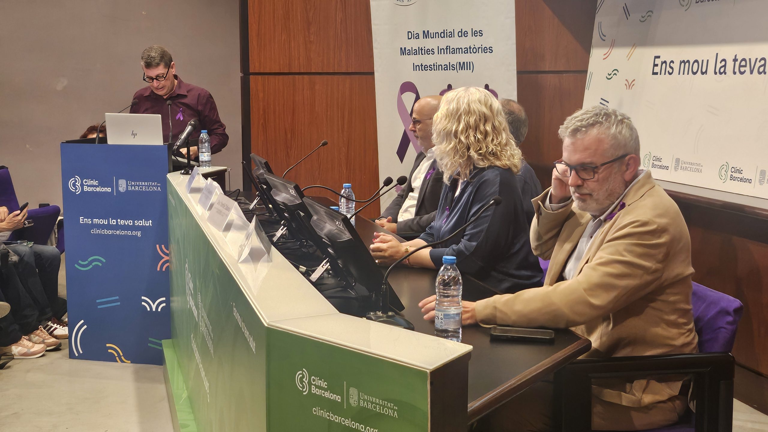 Seguidamente se llevó a cabo una mesa redonda bajo el nombre “¿Qué podemos esperar de los nuevos avances en la investigación de las EII?”, moderada por el periodista Carlos Esteve, en la que intervinieron la Dra. Yamile Zabana, adjunta al servicio del aparato digestivo en la Unidad de EII del Hospital Universitario Mútua Terrassa y presidenta de GETECCU; el Dr. Jordi Guardiola, responsable del departamento de Enfermedades Digestivas del Hospital Universitari de Bellvitge; el Dr. Xavier Aldeguer, coordinador de Innovación en el Hospital Trueta y Santa Caterina de Girona; y el Dr. Eugeni Domènech, jefe del servicio de la Unidad de Gastroenterología y EII del Hospital Germans Trias i Pujol. En este tiempo de debate, que contó con un espacio para preguntas de los pacientes, se discutieron los últimos descubrimientos en investigación biomédica y los retos de implementar estas innovaciones en la práctica clínica diaria.